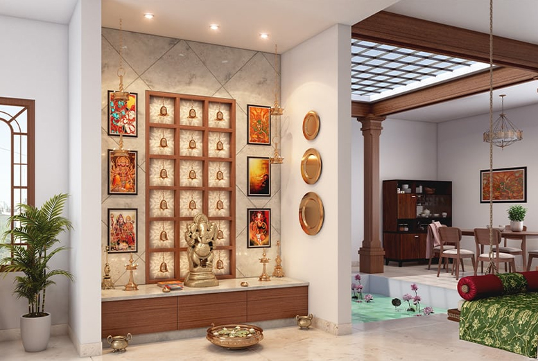 Enchant your spiritual space with Green Life Interiors' Pooja Room Interior services in Coimbatore. We craft sacred sanctuaries that blend tradition with contemporary design, ensuring a harmonious environment for your prayers and rituals. Our skilled designers pay meticulous attention to every detail, incorporating serene color palettes, intricate woodwork, and thoughtful lighting to create a tranquil ambiance. Customized to your preferences, our Pooja Room interiors reflect a perfect fusion of spirituality and aesthetics. Immerse yourself in divinity as we transform your Pooja Room into a haven of peace and serenity, where every element resonates with your beliefs and reverence. Trust Green Life Interiors to design a Pooja Room that not only enhances your spiritual experience but also adds a touch of elegance to your home.